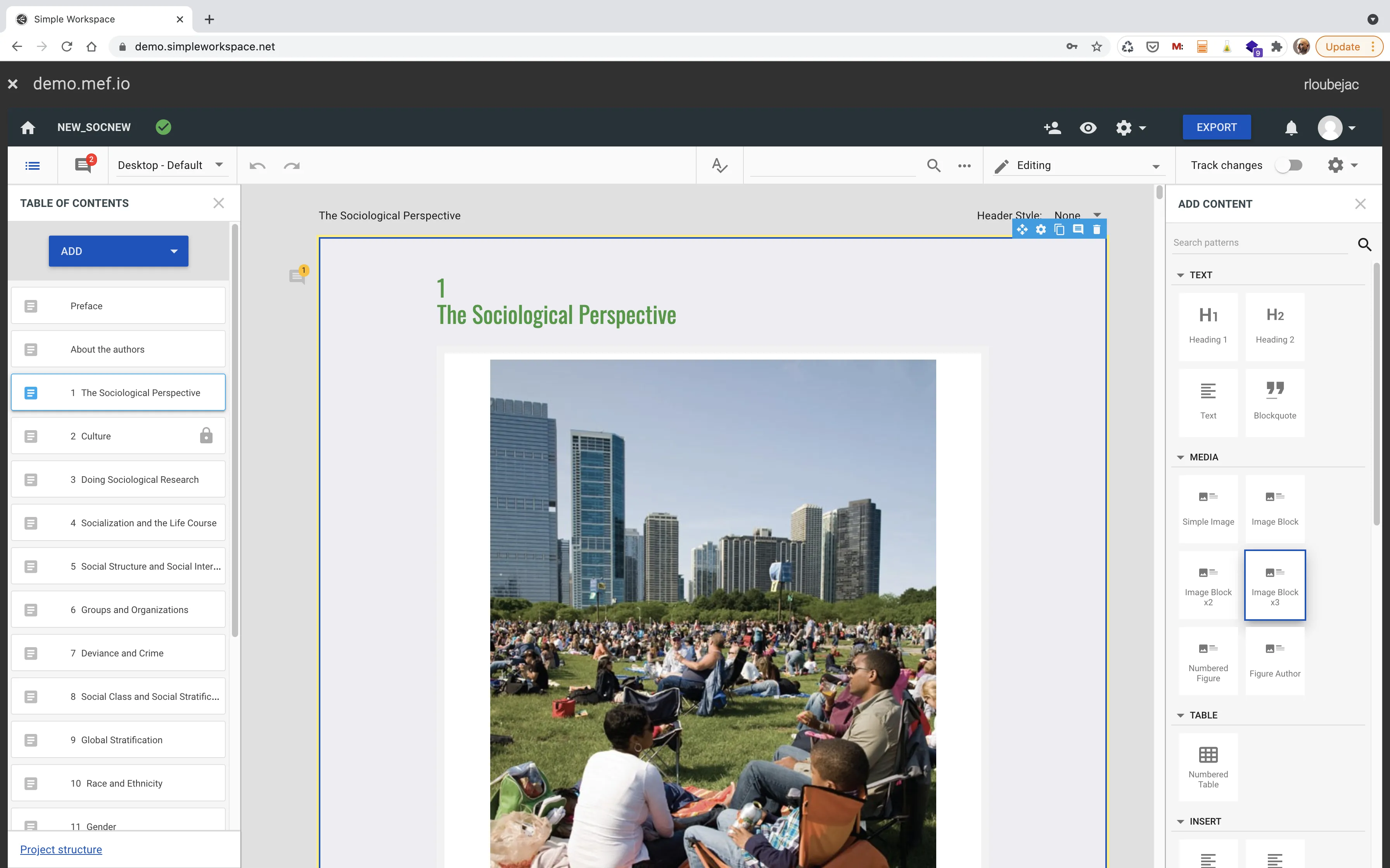 According to the charter, it is the presence of a content category in the data stream that triggers the layout control in the InDesign document. For example, the main text flow can be momentarily interrupted by a frame made up of an image accompanied by its caption and credit (e.g. Image block), or the definition of a term created during the input in an authoring system such as MEF 4 will be positioned next to the defined term, in the margin of the generated InDesign document.