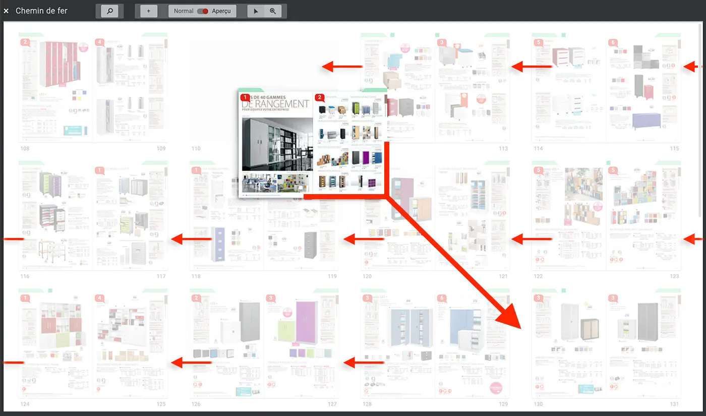 C’est une représentation visuelle de toutes les pages d’un document (catalogue, brochure, magazine, etc.) pour suivre leur avancement.