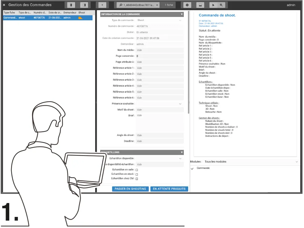 Que le studio photo soit interne ou externe, un brief photo lui est envoyé pour préciser la demande. Ce brief reprend la liste des produits concernés, précise les vues à prendre et prépare le suivi de l’expédition des échantillons.